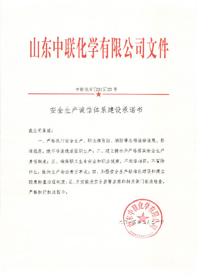 2015年2月20日《安全生產(chǎn)誠信體系建設(shè)承諾書》……